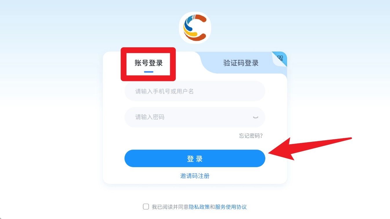 1. 打开应用程序进入登录页面,提供账号密码登录和验证码登录两种选择,填写相关信息后点击“登录”按钮完成操作。
