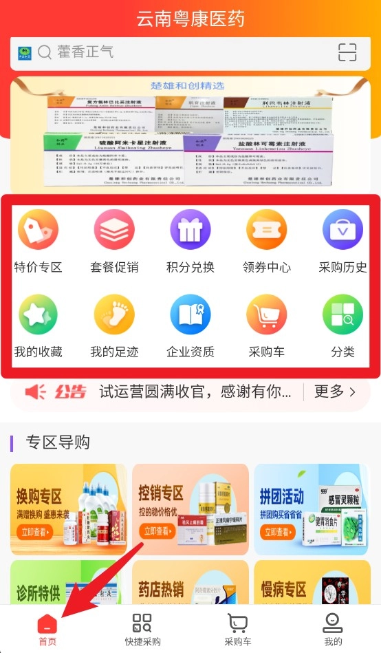 2、专区导购整合了换购、控销、拼团、慢病等专区内容,同时搭配品牌专区与精选品牌分类,助力用户精准选品。