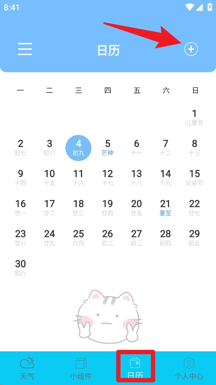 4. 进入“日历”板块后,点击右上角的“+”按钮来添加新的计划或提醒事项。