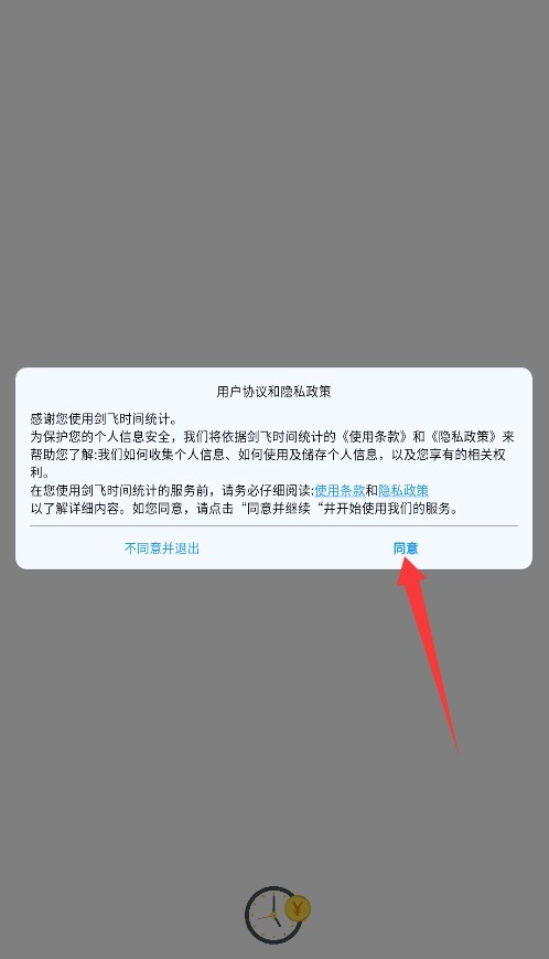 首次使用时,请仔细阅读用户协议和隐私条款,确认内容无误后点击同意按钮,即可进入主界面。