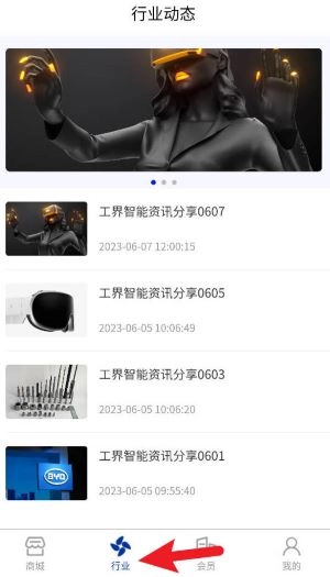 2、点击“行业”页签就能进入资讯栏目,查看每日更新的智能制造行业新闻与趋势。