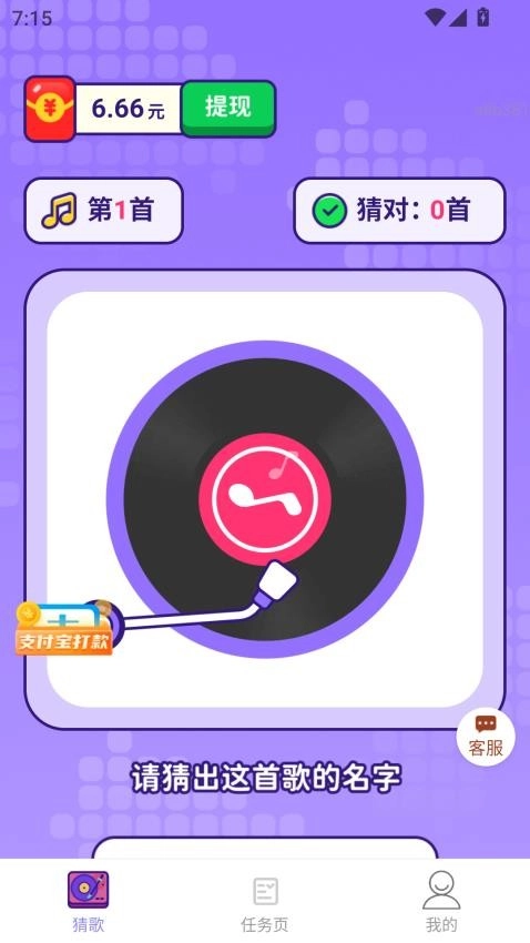 2. 猜歌游戏在主页面就能直接开始,页面下方设有任务页和“我的”板块,大家可以根据自身需求进行使用。
