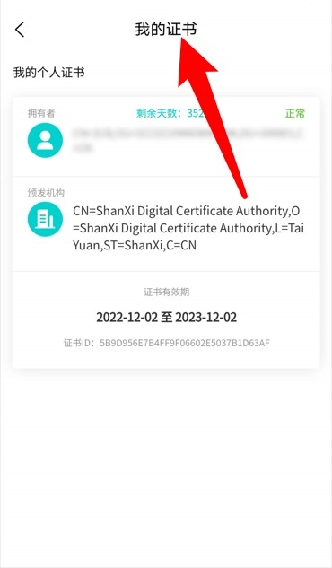 4. 进入“我的证书”页面查看个人证书的详细信息,确认其状态是否正常,并了解有效使用期限。
