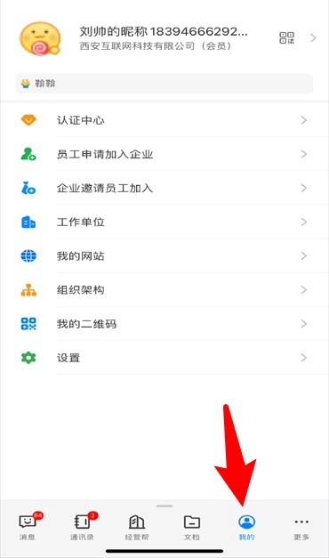 4、我的页面设有实名认证、组织架构、二维码及设置等入口,便于用户开展个性化管理。