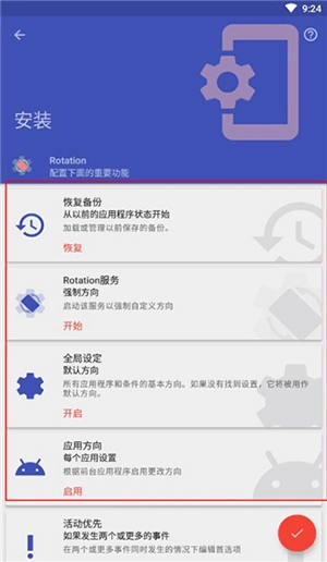 5. 支持为每个应用程序单独设置屏幕旋转模式。6. 拥有两类窗口小部件和状态栏通知功能,并且上面设有快捷方式按钮,能够帮助用户轻松调整屏幕旋转模式的设置。