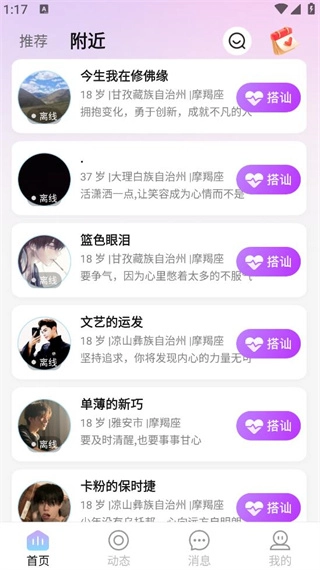 点击这里的附近功能,就能查看离你最近的单身异性,让你交友找对象更轻松。