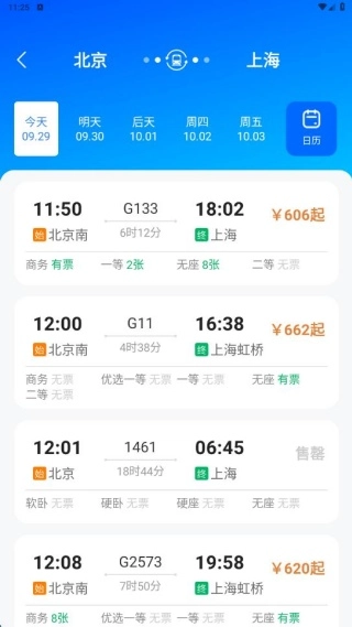 车次、时间、座位类型等信息全都有,帮您准确选到合适的票,不用再盲目买票了。