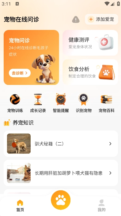 在主页面就能看到各项实用的养宠功能,大家可以根据自己的需求来使用。
