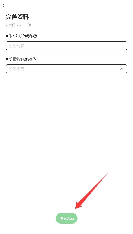 3、根据要求完成个人昵称与安全密码的设置,随后点击“进入”按钮,就能顺利开通平台账号了。