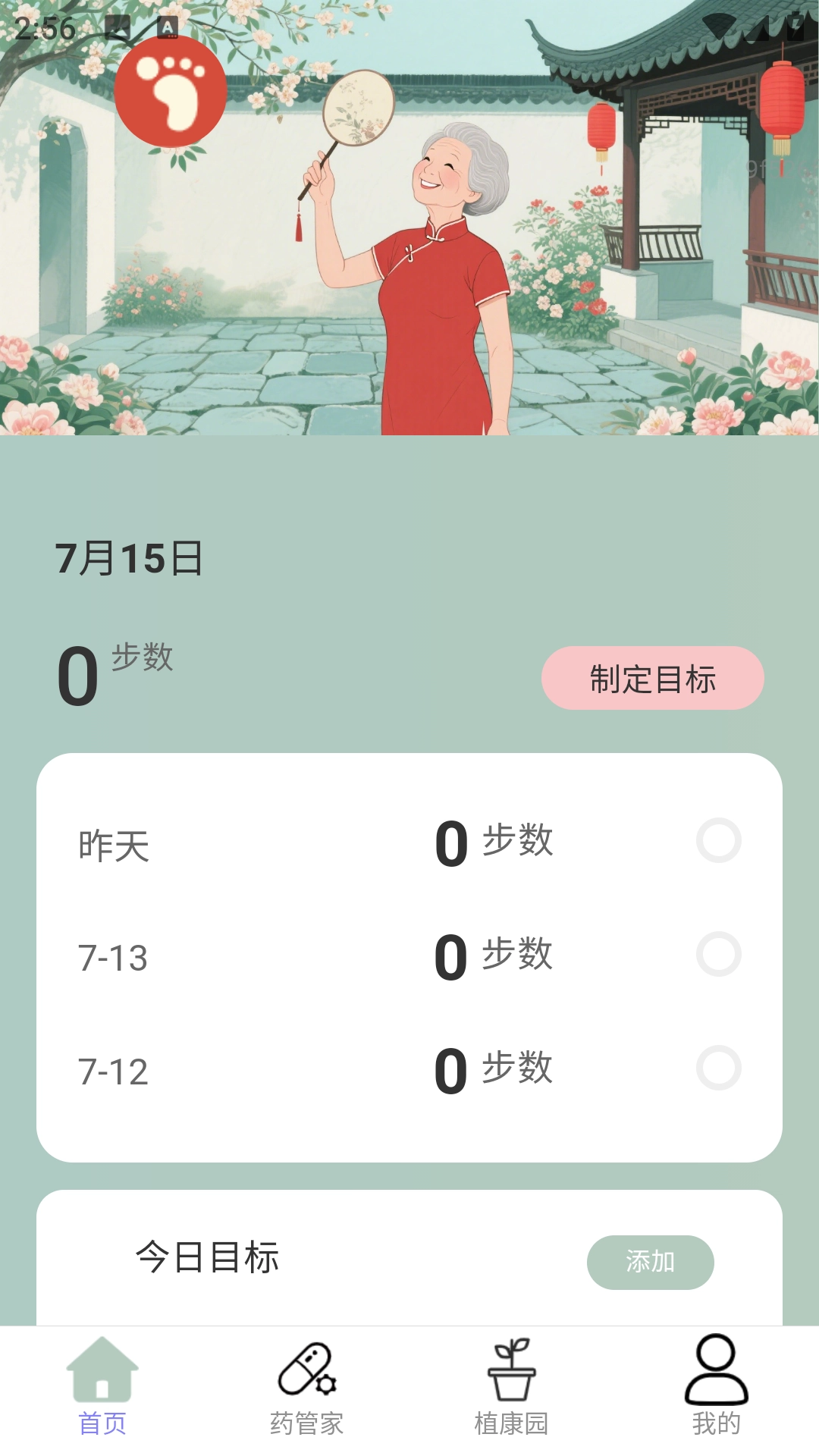 进入首页就能看到最新的步数统计数据,也可以手动设定今日的步数目标。