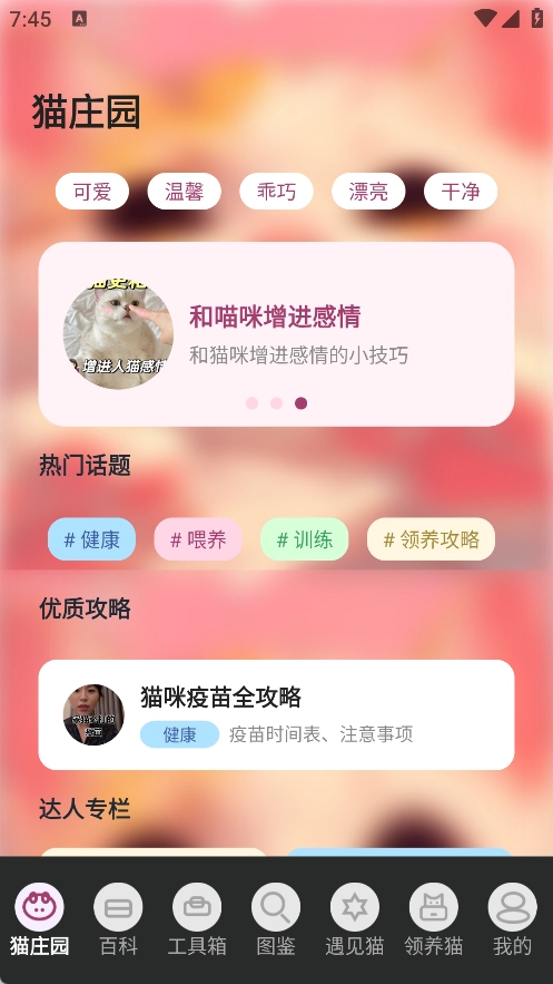 猫咪庄园的达人专栏会分享实用又贴心的养猫经验。