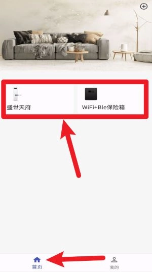 2、登录成功后进入首页,点击已添加的设备卡片(例如“WiFi+Ble保险箱”),即可进入设备管理页面。