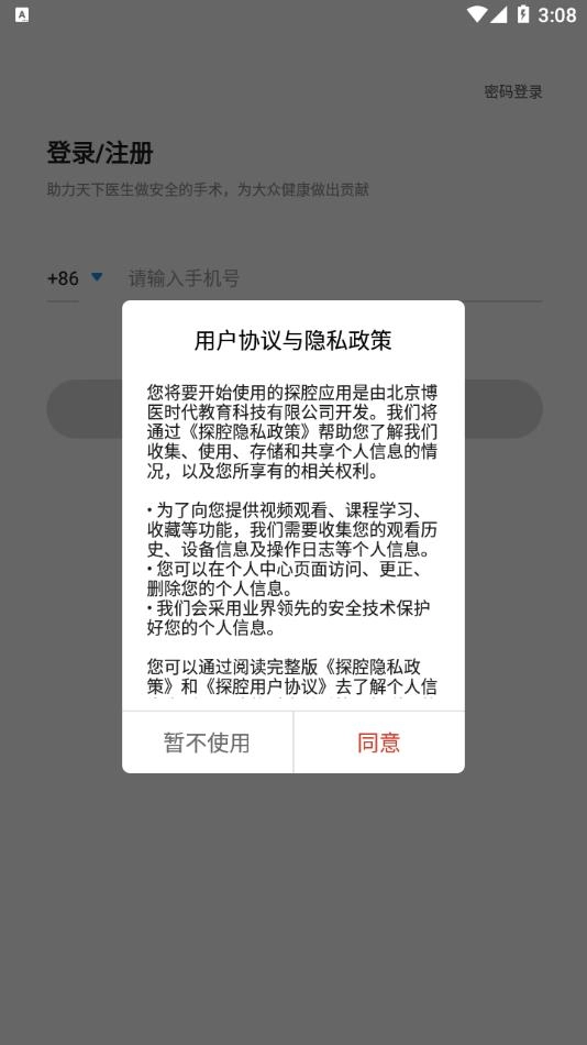 1、安装软件后打开,点击同意用户协议与隐私政策。