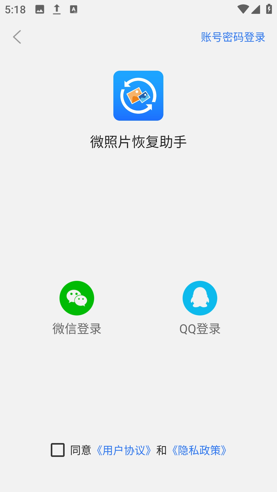 1、完成安装后,需先授权开启软件,登录时可选择微信账号或QQ账号进行操作。