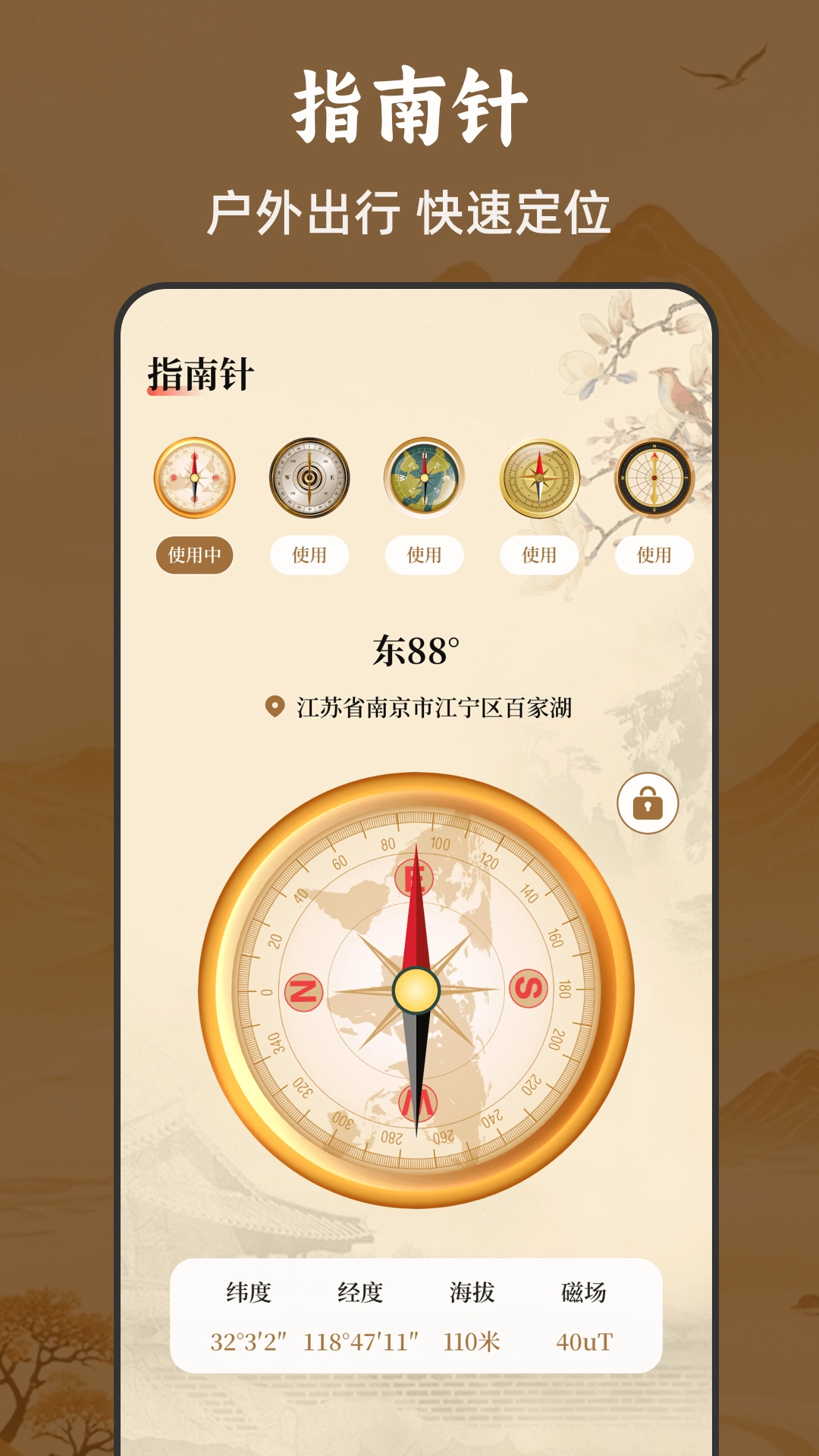 “三元精密罗盘指南针App”以其出色的性能和多样的功能,成为了一款难得的实用工具。不管是在复杂地形里辨认方向,还是在日常生活中找寻便捷方法,它都能为您提供值得信赖的协助。要是您也想拥有一款可以随时随地携带的“智能罗盘”,那就马上体验吧!核心功能罗盘与指南针,不管是户外探险、徒步旅行,还是日常辨认方向,都能为你提供可靠指引,让你在陌生环境中也不会迷路。罗盘相机功能很有特色,拍照时能够叠加罗盘信息,在记录美好瞬间的同时留下方向标记。黄历天气板块,不但提供每日黄历宜忌,帮助你合理安排生活事务,还能实时更新天气情况,让你提前做好出行准备。另外,测量工具集包含多种实用测量功能,满足你在不同场景下的测量需求。