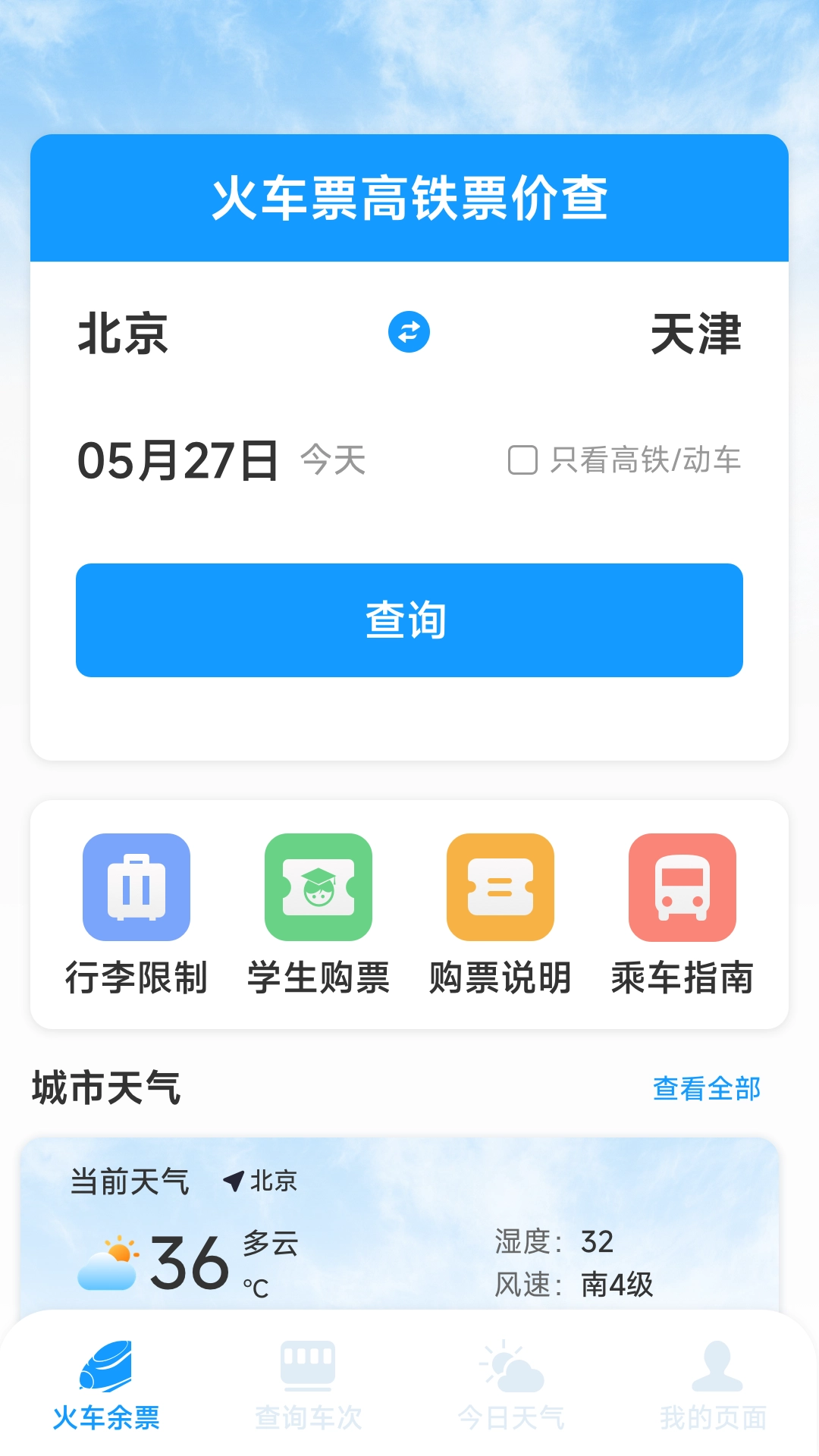火车票高铁票价查是一款集成了实时票价查询、车次信息展示、优惠活动提醒功能的智能工具,旨在让每位用户的旅途更轻松愉快。用户借助这款应用,能够快速获取全国所有列车(涵盖高铁、动车、普快等类型)的票价信息,同时还能使用详细车次安排查询、座位类型选择以及余票情况查看等实用功能。