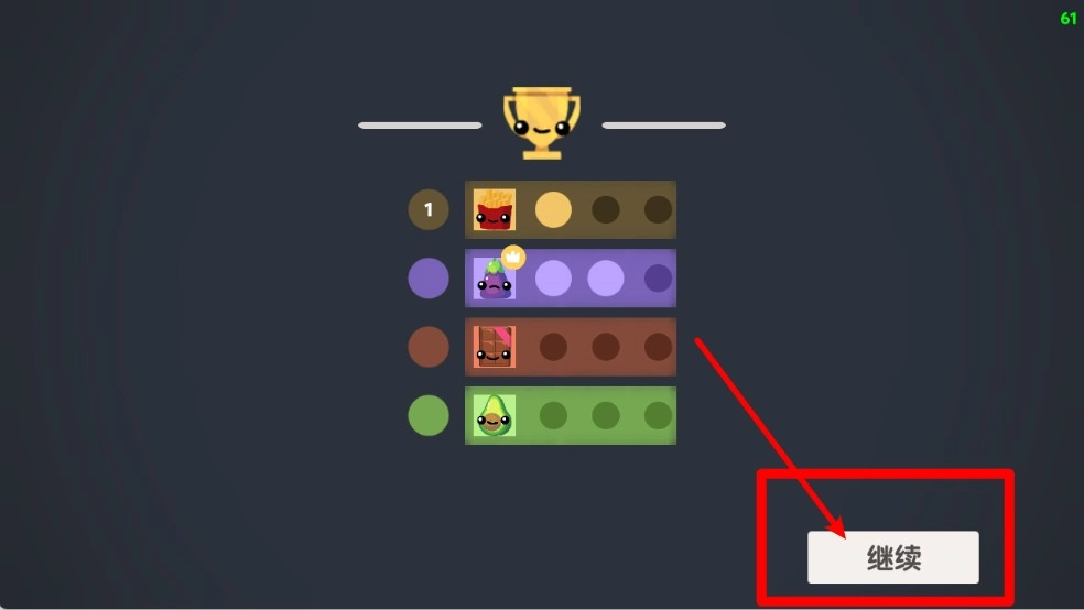3.点击右下角的“继续”按钮,就能直接跳过排名结算画面,快速进入下一场比赛,让战斗节奏变得更加流畅迅捷。
