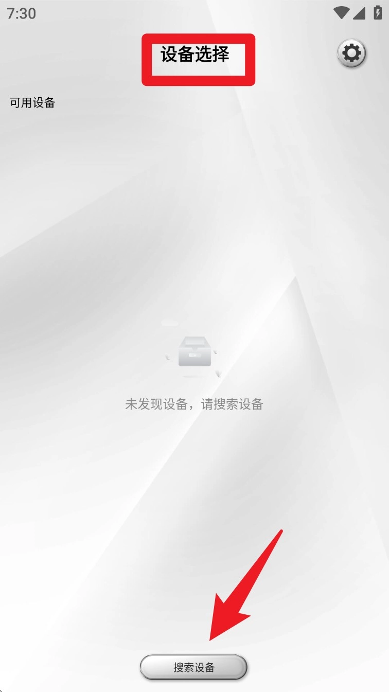 3. 登录成功后进入设备选择界面,点击下方的「搜索设备」按钮,等待扫描结果出来,就能绑定对应的设备来进行操控了。