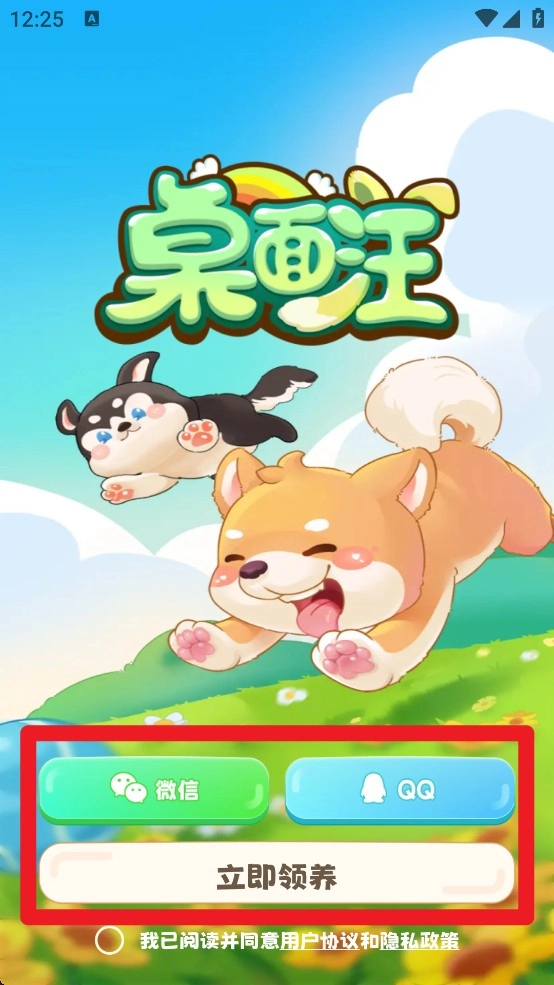 1. 打开应用后通过微信或 QQ 登录,点击“立即领养”按钮进入宠物选择界面。