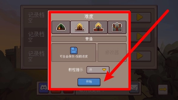 1. 开启游戏前可自主挑选难度模式并设置教学提示的开关状态,既能帮助新手快速熟悉游戏机制,也能让老手体验更具挑战性的生存节奏。