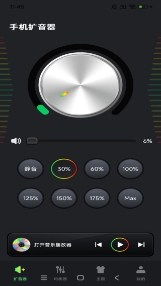 首页支持扩音音量的调节功能,可选择静音模式,也能设置30%、60%、100%等不同档位,甚至还能调节到更大的音量。