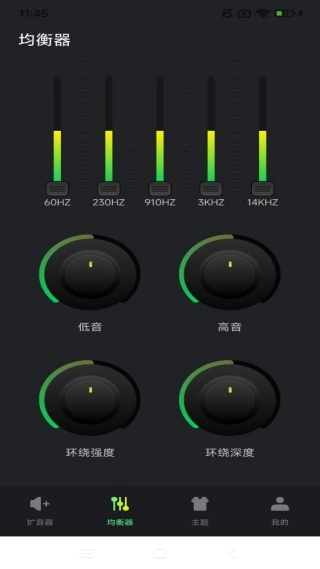 拥有均衡器设置功能,提供环绕强度以及深度调节。
