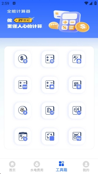 全能计算器板块整合了货币转换、税费计算、体重换算以及年月日天数转换等实用工具!
