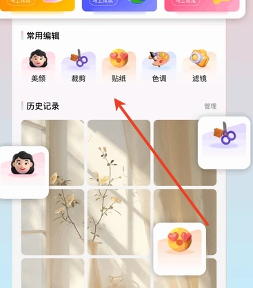 3、贴纸与文字添加功能配备了海量素材库,节日元素、可爱萌宠、潮流文字等各类素材一应俱全。
