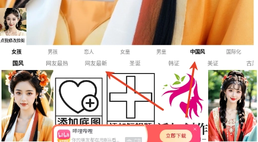 1、先在首页选你喜欢的写真风格模板,像甜美风、复古风等。