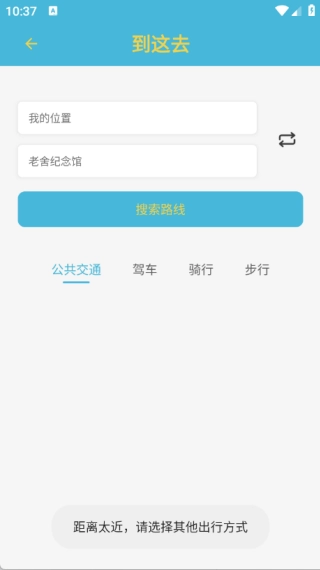 在具体的“到这去”页面里,能够选择公共交通、驾车、骑行以及步行等不同方式的导航。