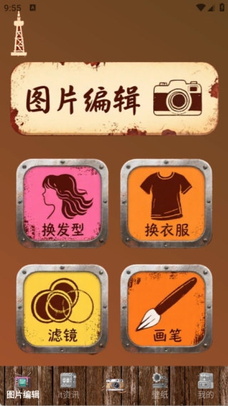 在图片编辑界面里,用户可以使用换发型、更换服饰、添加滤镜以及画笔绘制等多种功能。