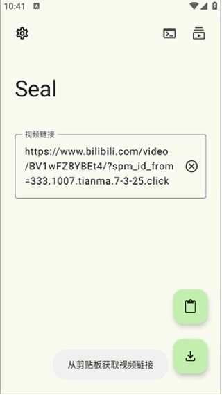 开启Seal后,点击【粘贴】按钮,它就会自动获取你剪贴板里的视频链接。