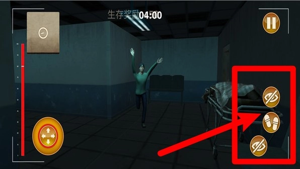 3.左下角的虚拟摇杆用于控制角色移动方向,让玩家在复杂的走廊与房间中灵活穿梭与躲避追击。