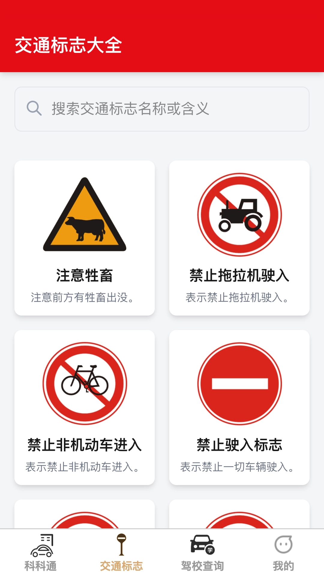 2、交通标志页面收录了种类丰富的交通标志,用户能够随时在线进行查看。