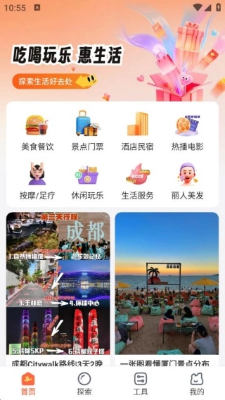 涵盖美食餐饮、景点门票、酒店民宿、热播电影等众多玩乐类别,还有权威榜单。