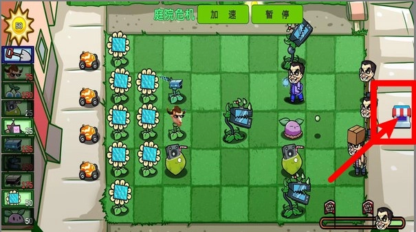 3.顶部的模式名称与加速暂停功能键,允许玩家灵活切换倍速或暂停整理阵型,从而精准掌控植物放置与防线节奏。