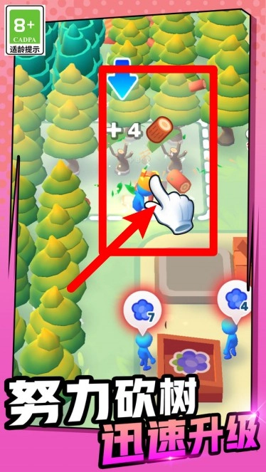 2.努力挥动工具不断砍伐树木,快速获得木材资源,确保在发展过程中拥有稳定建材来源,助力整体王国建设升级