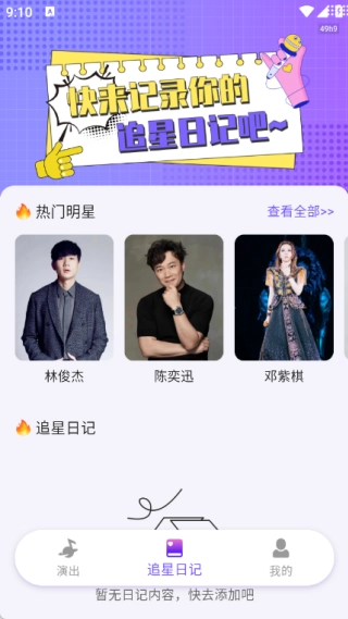 在追星日记里,你能了解当下热门明星的动态,也可以记录并添加属于自己的追星日常。