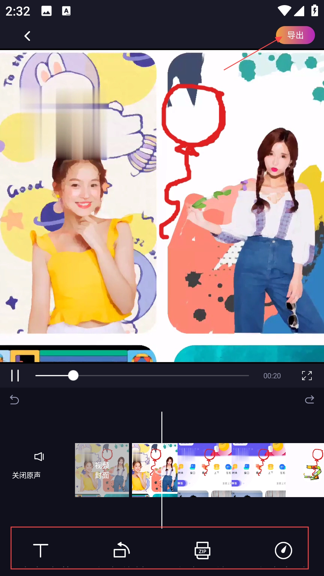 4、编辑完成后,点击“导出”按钮,就能保存或分享作品了。