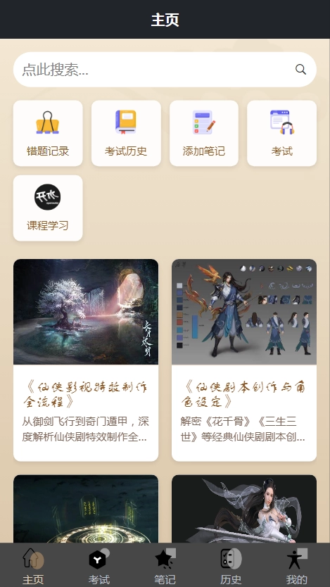 3、了解仙侠影视制作各环节专业知识,便于用户回顾学习、考试情况。