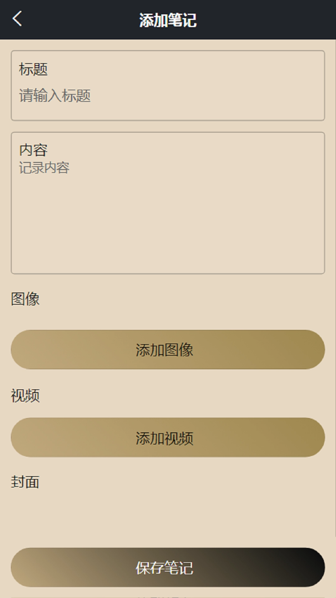 2、支持添加笔记,可输入标题、内容,还能通过添加图像、添加视频按钮。