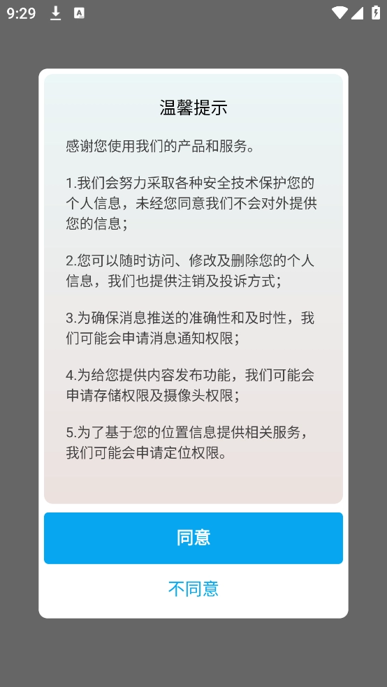 1、可以直接使用最新版本的软件,进入时需要先同意隐私权限。