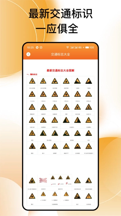 2、通过图文结合的方式对各类交通标志进行介绍,同时附上相应说明,助力用户更深入地理解并记住这些标志。