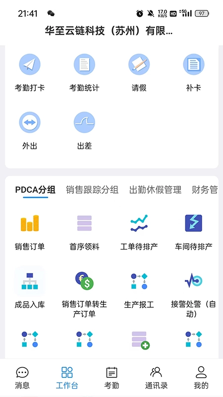 3、从基础考勤,到生产、销售流程管理,功能覆盖中小企业日常运营需求,可随企业发展,无需更换系统。