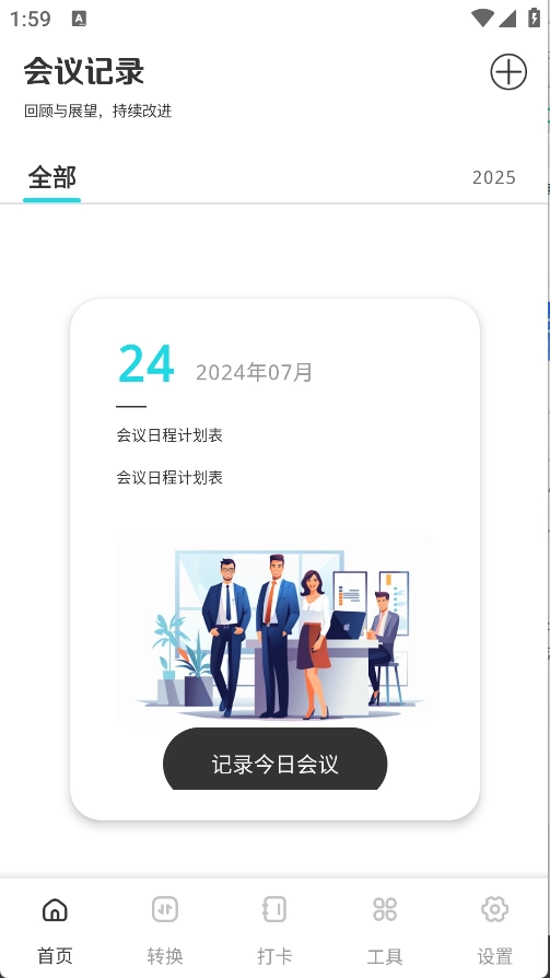 在首页就能记录今日会议,操作十分简单便捷。