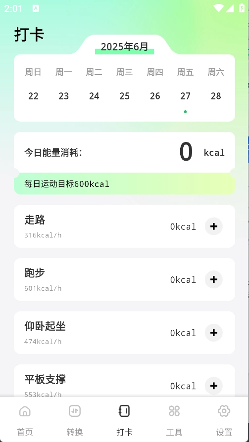 3、打卡页面配备了各类打卡服务选项,同时支持随时添加日历记录功能;