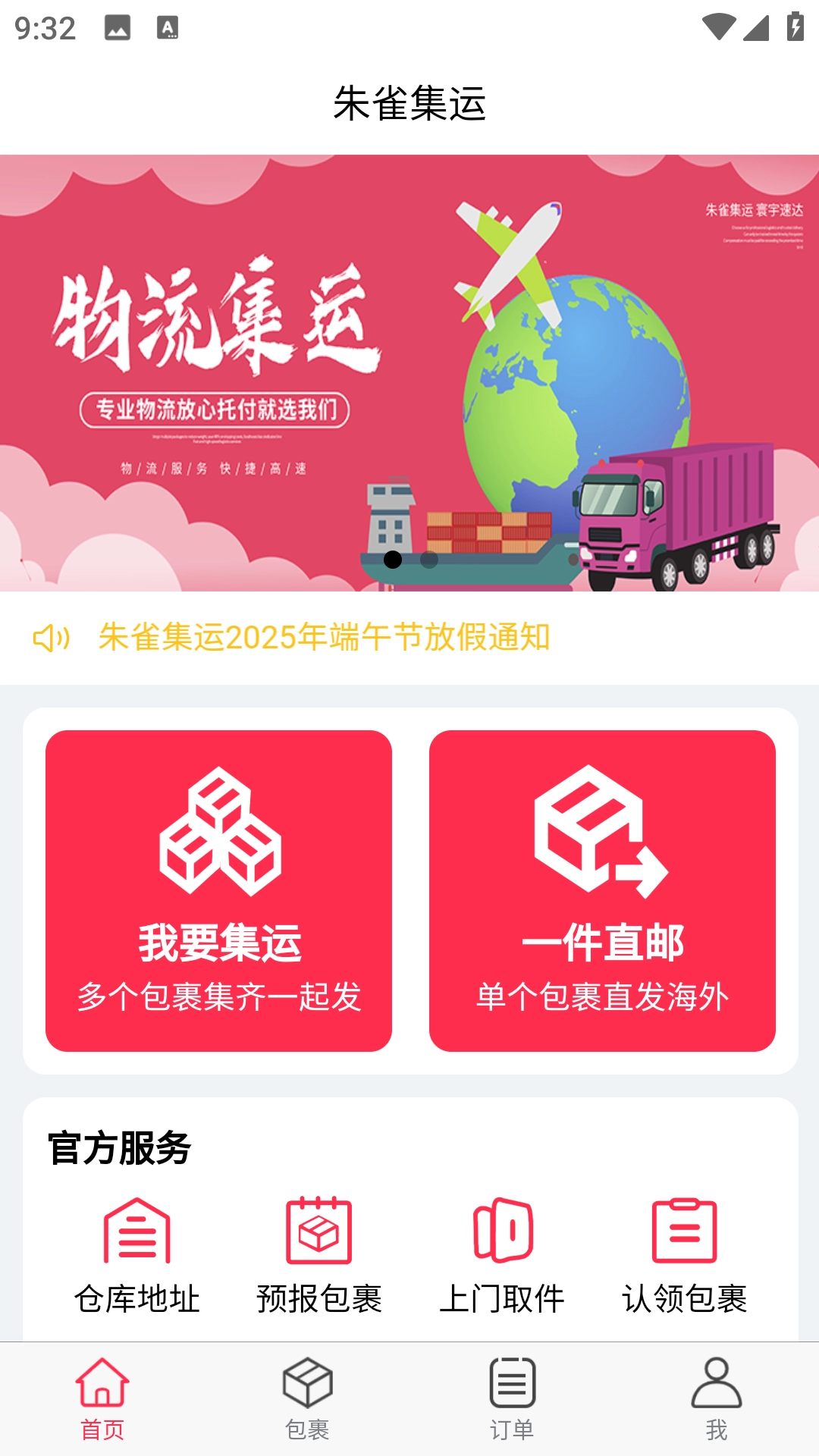 朱雀集运是专为跨境购物人群打造的集运服务平台,提供从中国发往海外的全方位国际集运服务。不管您在世界的哪个地方,朱雀集运都能保障您的包裹安全、高效地送到手中。借助一系列贴心服务与强大功能,朱雀集运让跨境购物变得轻松又愉悦。