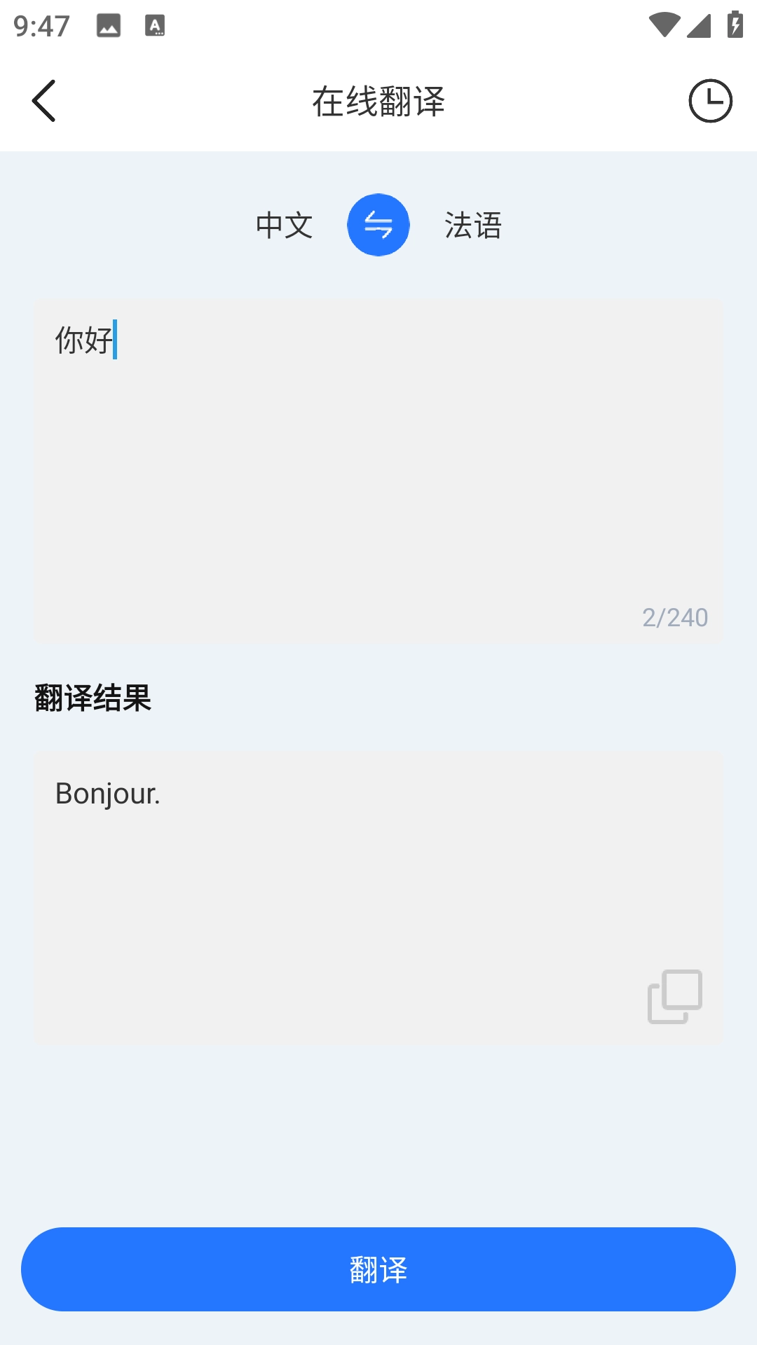 3、输入内容,点击【翻译】按钮即可。