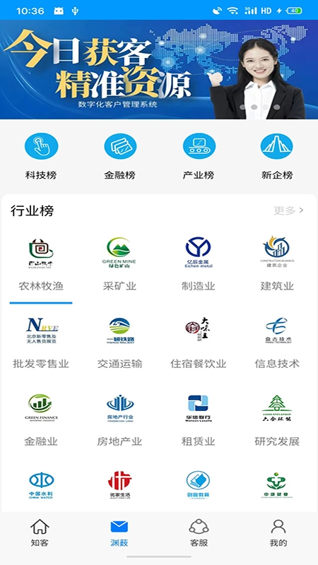 2、覆盖农林牧渔、采矿业、制造业、建筑业、房地产业等众多行业,整合了各行业的客户资源。