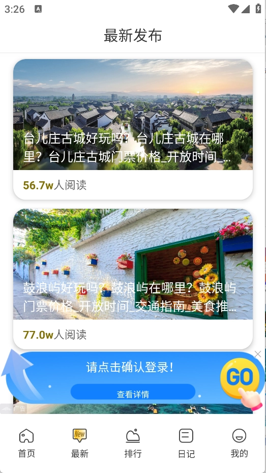 2、在最新页面里,你能够知晓各类最新发布的旅游资讯,也能了解不同旅游景点的相关内容。